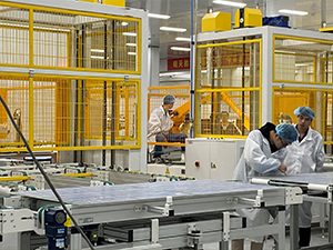 公司擁有行業(yè)領(lǐng)先的自動化標準及先進的智能化生產(chǎn)線,在線操作工大量減少,工人勞動強度降低80%以上。核心自動化設(shè)備有自動串焊機、機器人排版機、匯流條焊接機、全自動層壓機、自動裝框系統(tǒng)、自動灌膠系統(tǒng)、EL雙面外觀一體機、接線盒自動焊接機、分類下料機械手,整線節(jié)拍25秒,單線產(chǎn)能300MW/年。生產(chǎn)過程信息實時化控制,通過實時監(jiān)控運營現(xiàn)場的實際情況,進行及時的反應(yīng)。根據(jù)MES等系統(tǒng)采集的實時數(shù)據(jù),及時統(tǒng)計、分析,快速的對生產(chǎn)、設(shè)備、質(zhì)量、倉庫、人員等業(yè)務(wù)進行統(tǒng)籌分析,并對運營情況進行跟蹤處理。生產(chǎn)設(shè)備全部國產(chǎn)化,全國組件生產(chǎn)的一流高端生產(chǎn)線。