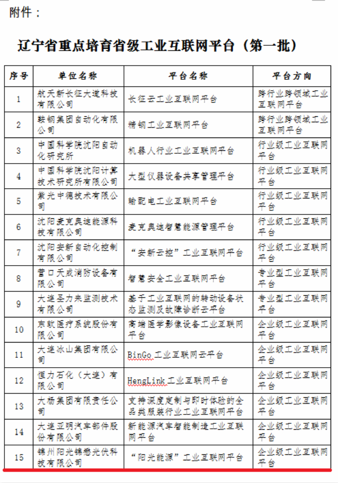 近日,遼寧省工業(yè)和資訊化廳公佈了2020年15個重點(diǎn)培育省級工業(yè)互聯(lián)網(wǎng)平臺(第一批)名單。錦州陽光錦懋光伏科技有限公司獲得“錦州首家企業(yè)級工業(yè)互聯(lián)網(wǎng)平臺”殊榮。這是錦州陽光錦懋光伏科技繼“遼寧名牌產(chǎn)品”後,獲得的又一個省級政府榮譽(yù),彰顯了錦懋光伏科技有限公司在技術(shù)創(chuàng)新、科研實(shí)力與創(chuàng)新成果等方面受到了高度認(rèn)可,一定程度上也代表了光伏行業(yè)在數(shù)位化經(jīng)濟(jì)發(fā)展方面的高水準(zhǔn)。