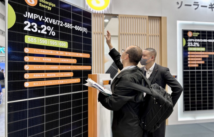 本次展會,陽光能源集中展示了公司的前沿技術和先進的光伏組件產(chǎn)品,5 款展品高度契合以小型項目為主導的日本光伏市場需求。其中一款 Giga-N 系列 48 片輕質雙玻戶用光伏組件,采用了 N型TOPCon 電池技術搭載 210R 矩形硅片,極大地提升了發(fā)電效率,組件轉換效率提升到 23.0% ,即便在弱光環(huán)境下也能高效運作;在外觀設計方面,打造更加簡約時尚的全黑外觀,適用于各類建筑風格。